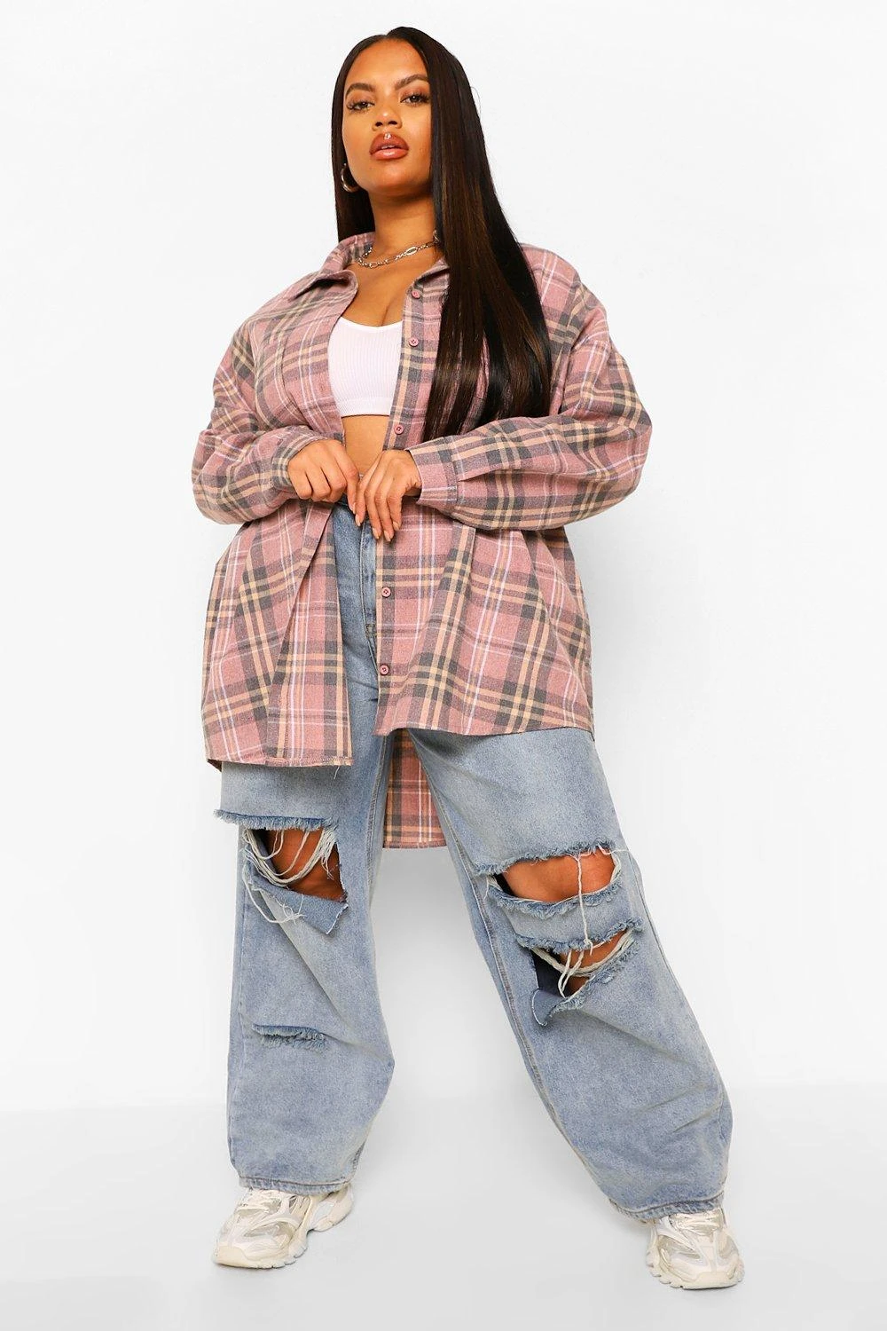 Mit boohoo Plus & Kurve kannst du dich von unvorteilhaften Oberteilen verabschieden. Wir wollen Pieces anbieten, in denen du dich bequem und selbstbewusst fühlst, während du super stylisch aussiehst. Von Garderoben Essentials zu auffälligen Styles, hier findest du alles von trendigem Denim zu verführerischer Spitze und schicken Prints.