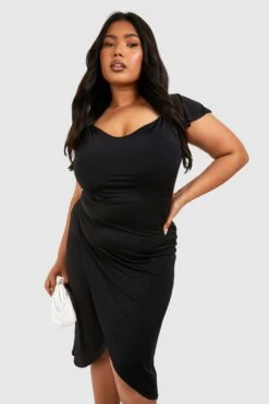 Plus Schulterfreies Wickel-Midikleid